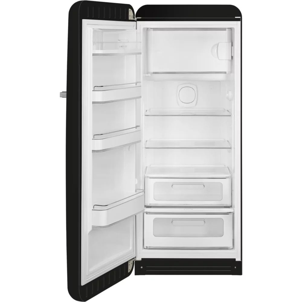 Avec son design vintage qui rappelle les annรฉes 50, le rรฉfrigรฉrateur SMEG FAB28LCR5 apportera une touche rรฉtro ร  votre cuisine. Pour ranger tous vos aliments, il possรจde 2 clayettes en verre, un bac ร  lรฉgumes, une zone fraรฎcheur et plusieurs balconnets de contre-porte. Lโ€™intรฉrieur de lโ€™appareil est รฉclairรฉ par deux bandeaux LED, qui apportent une excellente visibilitรฉ tout en consommant trรจs peu dโ€™รฉnergie.