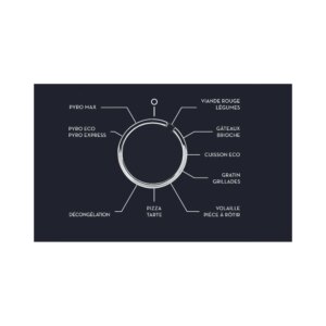 • Avantage pyrolyse : La température intérieure du four monte jusqu’à 500°C et détruit les graisses, vous n’avez plus qu’à récupérer les cendres à l’aide d’un torchon et le tour est joué !